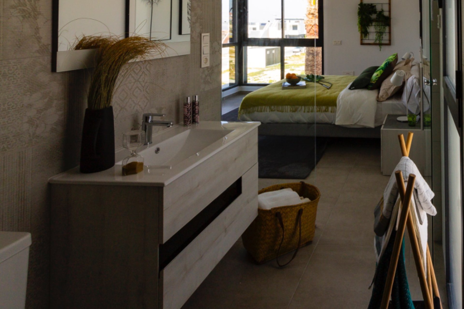 Esta moderna Villa está construida con las mejores calidades e incluye calefacción por suelo radiante en los baños, productos blancos en la cocina, zona de alicatado exterior y parking, persianas automáticas por toda la propiedad, puertas automáticas, todas las luces dentro y fuera de la propiedad y sistema de aire acondicionado.
