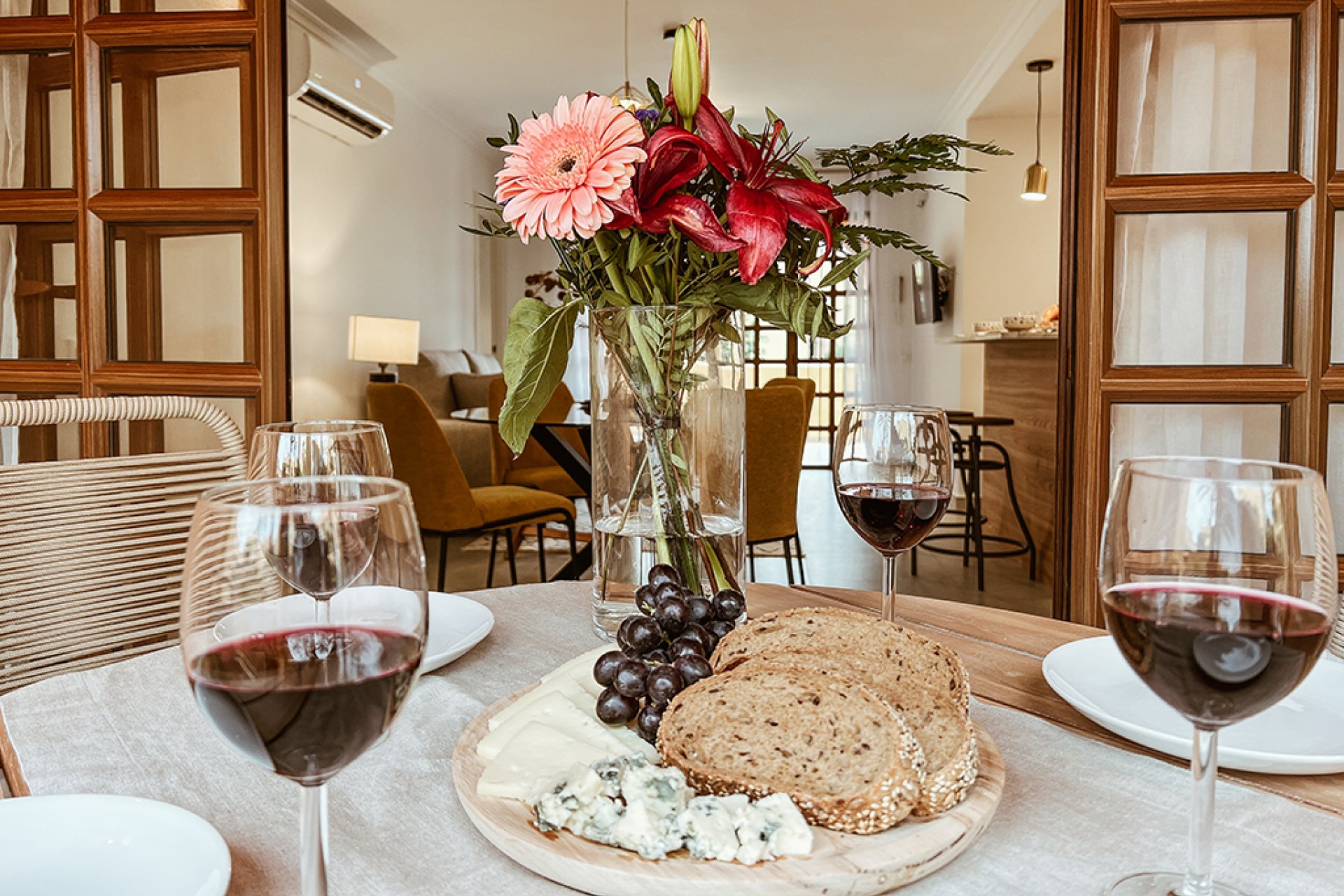 Het interieur van de appartementen weerspiegelt een nauwgezet oog voor detail en een toewijding aan comfort en functionaliteit: - Open woon-eetkamer: Ruime en lichte woon-eetkamer met dubbele oriëntatie, die aansluit op twee privéterrassen. Grote ramen van vloer tot plafond laten natuurlijk licht binnen en bieden vrij uitzicht. Hoogwaardige grootformaat porseleinen vloeren voor een stijlvolle en gemakkelijk te onderhouden afwerking. - Open keuken: Volledig ingerichte moderne keuken met kras- en vlekbestendig Compac-werkblad. Geïntegreerde high-end apparatuur: koelkast/vriezer, wasmachine, keramische kookplaat, afzuigkap en magnetron. Functioneel ontwerp met optimale opbergruimte en hoogwaardige afwerking. - Ruime en gezellige slaapkamers: Twee ruime slaapkamers met gespiegelde inbouwkasten en hoogwaardige interieurafwerking. Ouderslaapkamer met en-suite badkamer en directe toegang tot het privéterras. Afgewerkt in neutrale tinten voor een warme en ontspannen sfeer. - Hoogwaardige badkamers: Uitgerust met materialen en accessoires van prestigieuze merken zoals Roca of Porcelanosa. Regendouche met douchescherm van gehard glas. Badkamermeubels met verlichte spiegel en moderne designkranen. - Moderne en efficiënte apparatuur: Volledig geïnstalleerde airconditioning (warm/koud). Dubbele beglazing voor superieure thermische en akoestische isolatie. Aerothermisch systeem